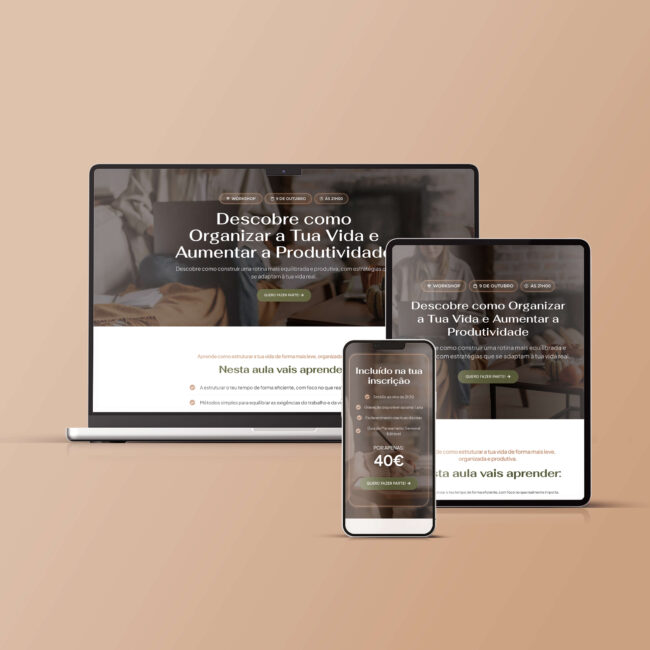 "Precisava de uma Landing Page profissional sem perder tempo a criar tudo do zero. Escolhi um template alinhado com a minha marca e, como já tinha o copy escrito e as imagens selecionadas, em apenas uma hora fiz todas as adaptações e a página ficou pronta! Sem dúvida, uma solução eficiente que me poupou horas de trabalho e me permitiu focar no que realmente importa no meu negócio!"
